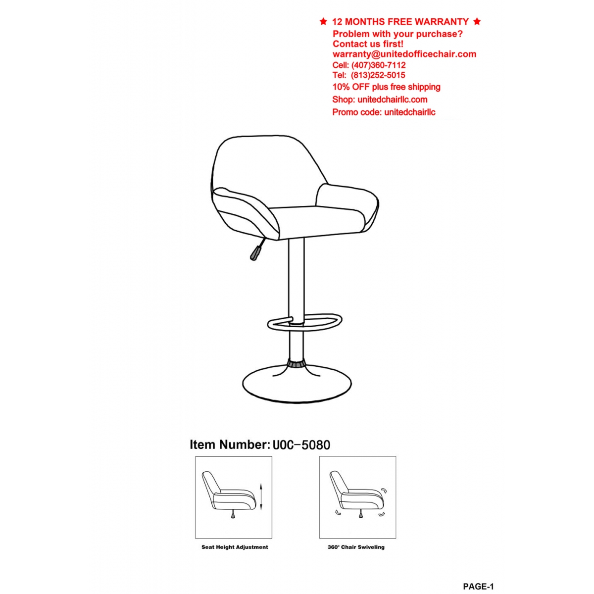 Learn more about the Kitchen Stool UOC-5080-BK